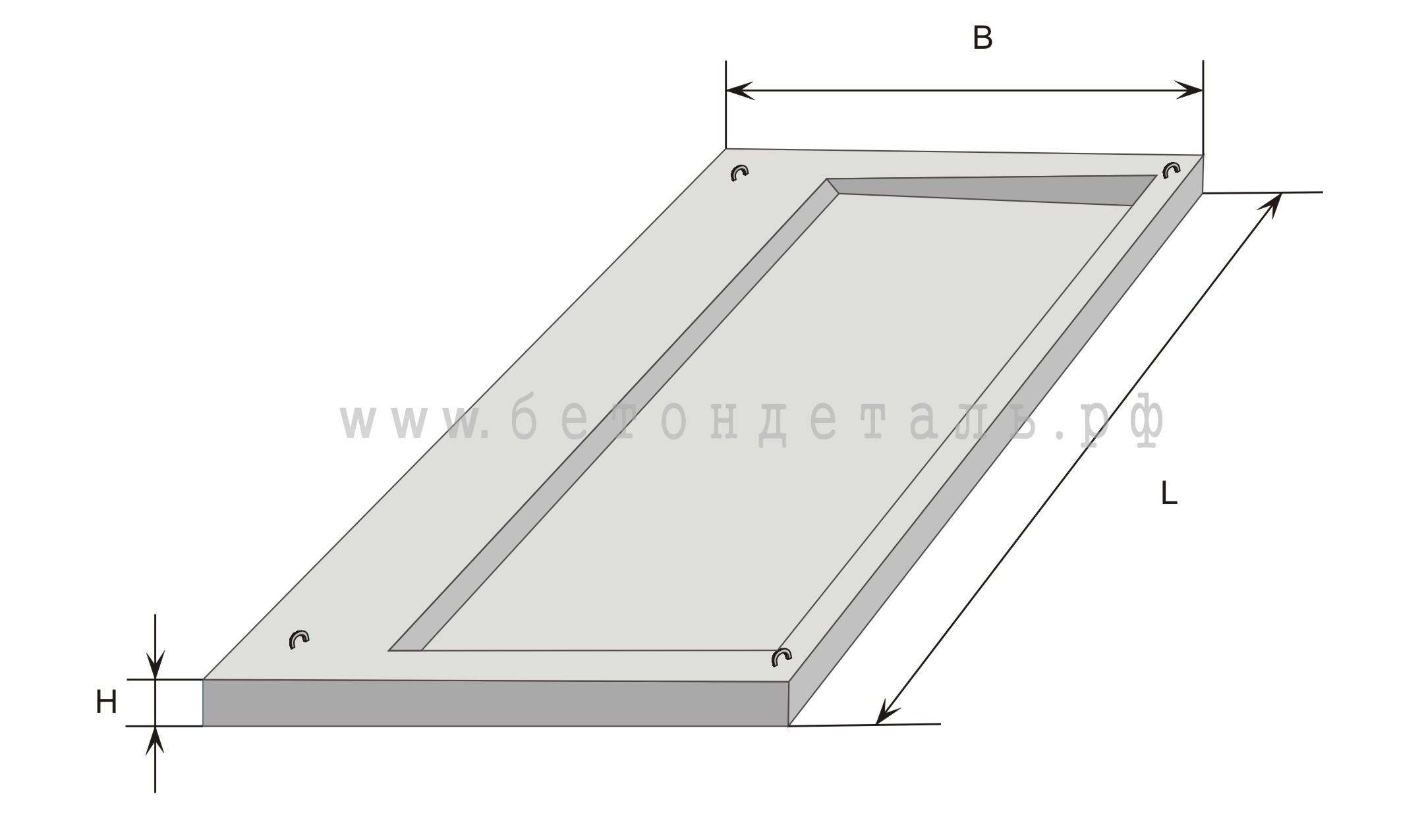 Для удобства проведения погрузочно-разгрузочных работ, а также для удобного монтажа железобетонного изделия, конструкцией предусмотрено наличие специальных монтажных петель.