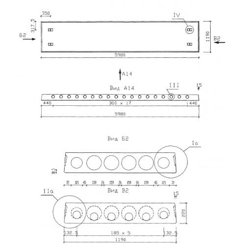 Плиты длиной 5980 мм и шириной 1190 мм с напрягаемой арматурой из стали классов A-IIIв, A-IV, Ат-V , из тяжелого бетона. Метод натяжения - электротермический.