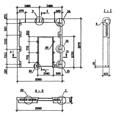 - в панелях без проемов - отличие в типах или расположении вертикальных торцов панели (зеркальность).
