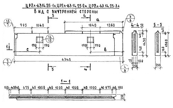 Серия 1.117-9    Панели групп ЦР1, ЦР2, ЦР4, ЦР5  толщиной 250 мм.