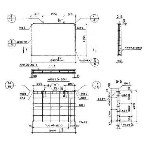 В1.3-35.27.12-1 Внутренние стеновые панели (Серия 1.131-1).