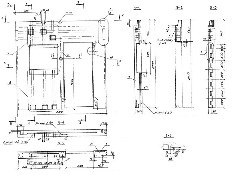 Третья группа включает индексы, обозначающие: первая цифра - вид боковой грани, определяющей примыкание электротехнических панелей к смежным конструктивным элементам (1-вертикальные боковые грани без выступов, 2 - вертикальные грани по всей высоте имеют выступ); две последующие цифры после точки - определяют толщину плиты перекрытия (в сантиметрах), для опирания которой имеется подрезка на верхней грани электротехнической панели; буквенным индексом обозначено положение ниши для электрощита по отношению к длине электротехнической панели или простенка (П-ниша справа, Л- ниша слева), при расположении ниши по центру буквенный индекс не проставляется.