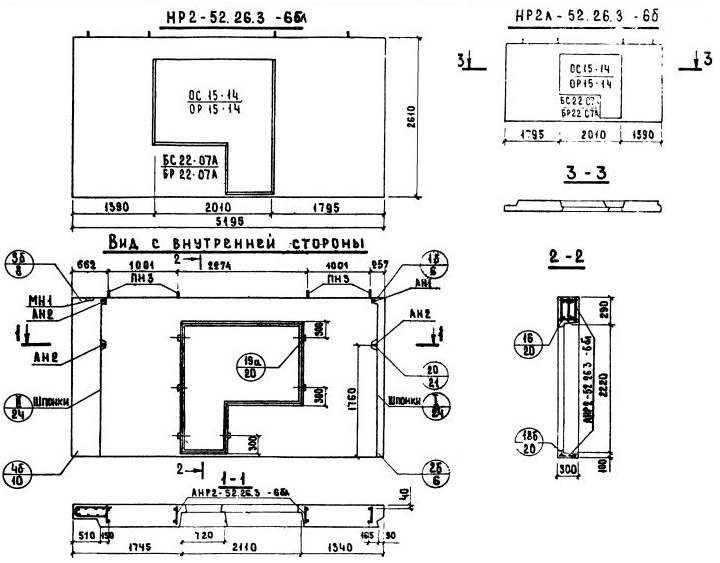 НР2-52.26.3-6бл    Наружная стеновая панель рядовая по Серии 1.132-2.
